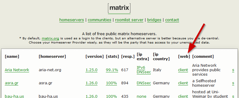 www.hello-matrix.netQuando vires um de que gostas, clica à direita onde diz "client" na coluna "[web]" e cria uma conta.