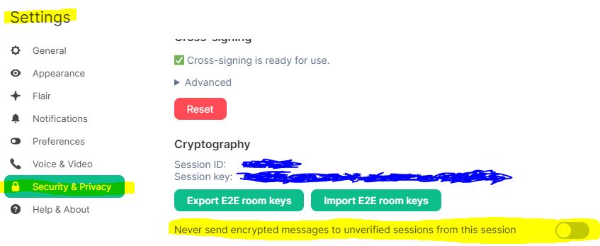 Em salas encriptadas, pode acontecer que os outros não consigam ver as tuas mensagens. Para resolver este problema: