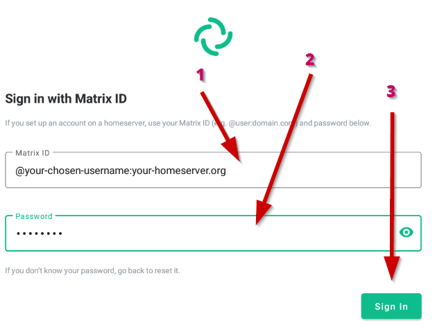 - A tua conta no formato "@teu_nome_de_utilizador:teu_servidor.org". Este é o formato de uma conta de utilizador Matrix, através da qual poderás ser contactado no Matrix.